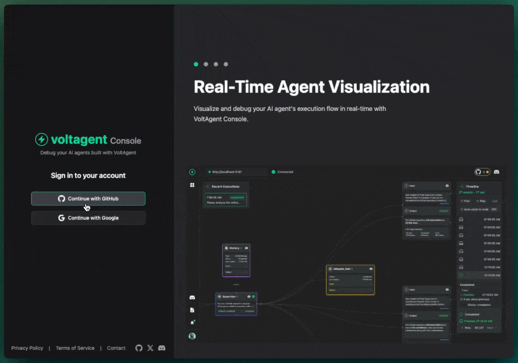 VoltAgent は 2 つの補完ツールを通して AI エージェントを開発・監視するための完全なプラットフォームを提供します。